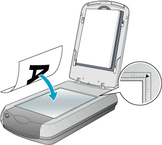 Coloque o documento no vidro de digitalização, com a face a ser digitalizada voltada para baixo. Certifique-se de que o documento fica correctamente alinhado com a marca de alinhamento, tal como indica a figura.