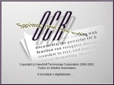 Utilize esta aplicação para digitalizar e converter as imagens em texto. O texto convertido pode ser guardado ou enviado para uma aplicação de processamento de texto. Quando inicia esta aplicação, aparece o ecrã apresentado em seguida.