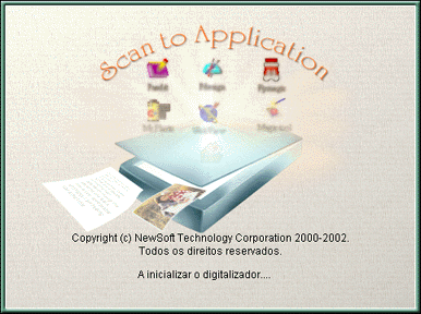 Utilize esta aplicação para digitalizar e, em seguida, enviar as imagens para a aplicação pretendida para edição posterior. Quando inicia esta aplicação, aparece o ecrã apresentado em seguida.