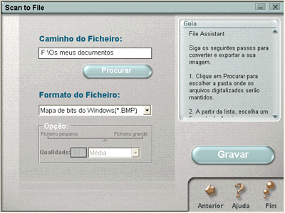Utilize esta aplicação para digitalizar, converter e guardar a imagem numa pasta específica. Quando utiliza esta função, a imagem é digitalizada a partir do EPSON Scan e é apresentada na caixa de diálogo do assistente de verificação (Verify Assistant). Faça clique em Terminar e aparecerá a caixa de diálogo apresentada em seguida.