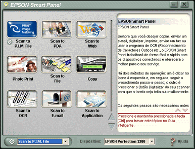 do digitalizador uma aplicação da janela do EPSON Smart Panel, execute as operações apresentadas em seguida.
