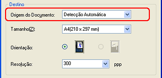 Na janela principal do EPSON Scan, certifique-se de que a opção Detecção Auto está seleccionada na lista Origem do Documento.