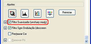 O resultado da função de remoção do pó não aparece na imagem pré-visualizada. Observe o resultado na imagem digitalizada.