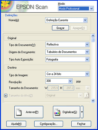 Nos modos casa ou profissional, não pode utilizar esta função quando tiver seleccionado Película como tipo de documento.
