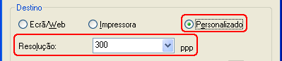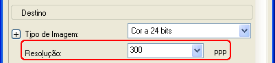 Faça clique na seta situada junto à lista Resolução e seleccione o número de pontos por polegada para efectuar a digitalização. Tenha em atenção as seguintes indicações: