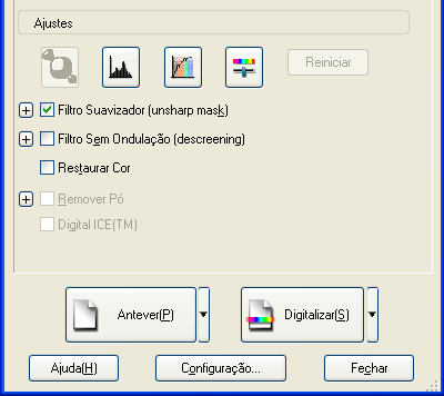 O modo profissional é o ideal quando pretende pré-visualizar a imagem e efectuar muitas correcções detalhadas antes da digitalização. Pode tornar as imagens mais nítidas, corrigir a cor e melhorar as imagens utilizando um vasto leque de ferramentas, incluindo a restauração de cor, remoção de pó, Digital ICE e Digital ICE Lite (apenas películas e diapositivos).