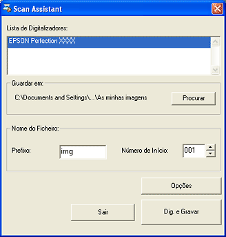 ![]() | Faça clique em Scan and Save. Aparece a janela EPSON Scan. |