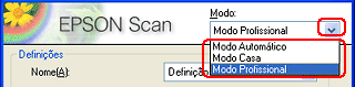 O EPSON Scan possui três modos que permitem alterar definições de digitalização: o modo automático, o modo casa e o modo profissional.