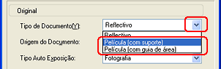 Seleccione um tipo de película a partir da respectiva lista. |
