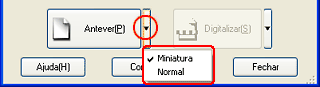 Pode seleccionar um método de pré-visualização: a pré-visualização de miniaturas ou a pré-visualização normal. Faça clique na seta pequena situada à direita da tecla Antever e seleccione Miniatura ou Normal.