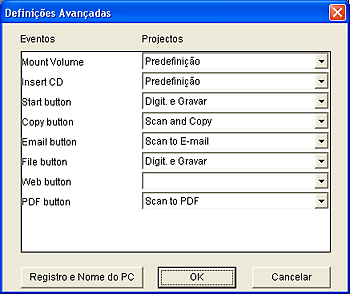 Clique no botão Definições Avançadas para atribuir um programa de projecto a outro botão. Aparece esta janela.