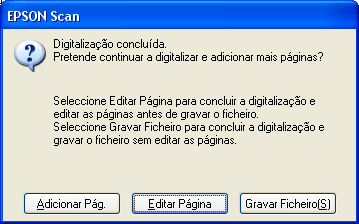 Se estiver a digitalizar várias páginas, faça clique em Adicionar Pág., substitua a primeira página que se encontra no vidro de digitalização pela segunda e faça clique em Digitalizar. Volte a efectuar esta operação para cada página do documento. Quando terminar, faça clique em Editar Página e avance para o ponto 10.