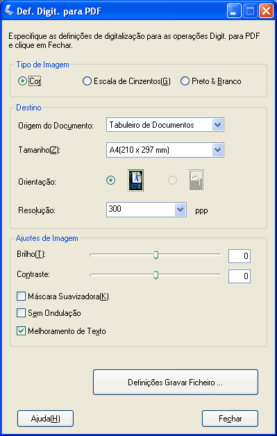 Pressione o botão Digit. para PDF  no digitalizador. Aparece a janela Digit. para PDF.