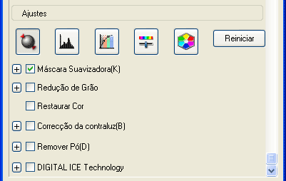 Antes de efectuar ajustes, certifique-se de que faz clique na imagem ou na demarcação da área que pretende ajustar. No Modo Profissional, poderá ter de percorrer a janela para baixo até à área de Ajustes da janela principal do Epson Scan.