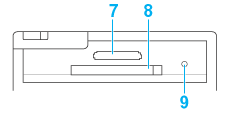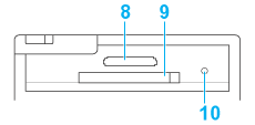 8. Conector para cartões xD-Picture Card/Memory Stick/Memory Stick PRO/SD/MultiMediaCard: Utilizado para inserir cartões de memória xD-Picture, Memory Stick, Memory Stick PRO, Memory Stick Duo, Memory Stick PRO Duo, MagicGate Memory Stick, MagicGate Memory Stick Duo, SDHC, SD, mini SDHC, mini SD, micro SDHC, micro SD e MultiMediaCard.