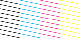 Quando o processo de limpeza terminar, faça clique na tecla Confirmação da caixa de diálogo Limpeza das Cabeças para imprimir um modelo de verificação dos jactos. Utilize o modelo de verificação para verificar se a cabeça de impressão está limpa.