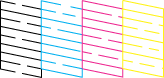 Se os segmentos das linhas impressas apresentarem falhas, tal como indica a figura, isso pode significar que existem jactos obstruídos ou que a cabeça de impressão está desalinhada.