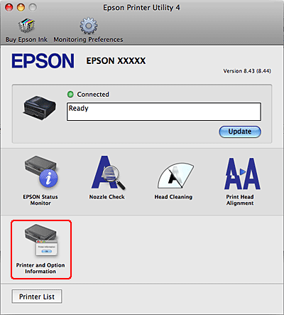 Aceda à caixa de diálogo Epson Printer Utility 4.
