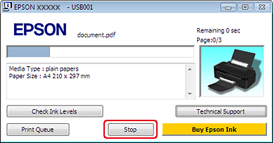 Se tiver de cancelar a impressão, siga as instruções apresentadas na secção adequada apresentada abaixo.