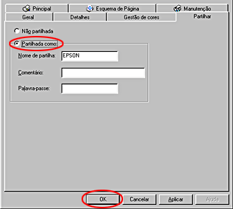 Configurar a impressora como impressora partilhada