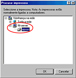 Aceder à impressora através de uma rede