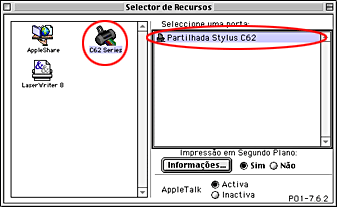 Para partilhar uma impressora com outros computadores numa rede AppleTalk, execute as operações apresentadas em seguida para configurar o computador ao qual a impressora está ligada.
