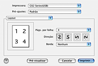 Para imprimir várias páginas do documento numa folha, seleccione a opção de esquema (Layout) para a definição Multi-Páginas, no menu emergente.
