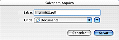 ![]() | Seleccione Opções de saída a partir do menu emergente e active a caixa de verificação Salvar como Arquivo. A tecla Imprimir muda para Salvar. |