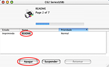 Na lista Nome do Documento, seleccione o documento que está a imprimir e, em seguida, faça clique na tecla Apagar para cancelar a tarefa de impressão.