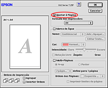 Seleccione a caixa de verificação Ajustar à Página situada na caixa de diálogo de esquema (Macintosh).