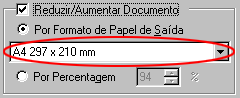 No menu de esquema de página (Windows), seleccione a caixa de verificação que permite reduzir e aumentar os documentos e seleccione a opção relativa ao formato de papel de saída.