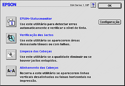 Os utilitários da impressora EPSON permitem verificar o estado actual da impressora e efectuar a manutenção da impressora a partir do computador.