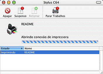 Depois de enviar uma tarefa de impressão, aparece uma tecla EPSON Stylus C64 na barra de tarefas. Faça clique nesta tecla para abrir o Gestor EPSON.