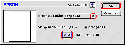 Especifique a largura da margem de união na caixa de texto. Pode definir um valor compreendido entre 0,12 e 1,18 polegadas ou entre 0,3 a 3 cm.
