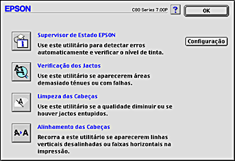 Os utilitários da impressora EPSON permitem verificar o estado actual da impressora e efectuar a manutenção da impressora a partir do ecrã do computador.