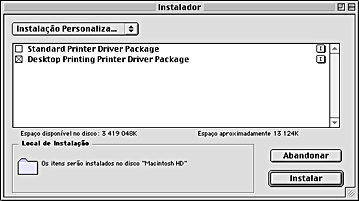 Seleccione Instalação Personaliza... no Instalador e a caixa de verificação Desktop Printing Printer Driver Package.