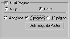 A selecção da caixa de verificação Multi-páginas permite escolher entre as definições N-up e Poster. Consulte a secção adequada.