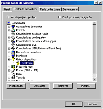 Em Outros dispositivos, seleccione Impressora USB, EPSON Stylus C80 ou EPSON Stylus C70 e faça clique em Remover. Faça clique em OK.