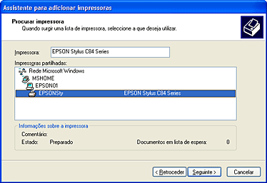 Seleccione Impressora de rede e, em seguida, faça clique em Seguinte.
