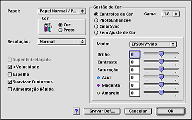 Definições do Software da Impressora / Mac OS 8.6 a 9.x
