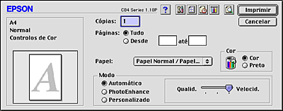 Quando selecciona o modo Automático , o software da impressora efectua todas as definições pormenorizadas com base nas definições de tipo de papel e tinta seleccionadas.