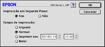 ![]() | Seleccione Urgente, Normal, Imprimir em ou Reter para a opção Tempo de Impressão. |