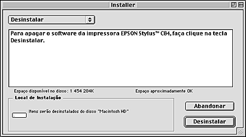Arraste a pasta relativa ao guia do utilizador situada na pasta EPSON Stylus C84 do disco para a reciclagem. Em seguida, arraste o ícone relativo ao guia do utilizador da ESC84 do ambiente de trabalho para a reciclagem.