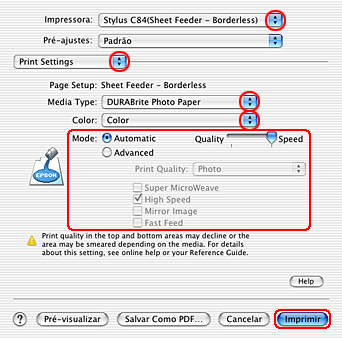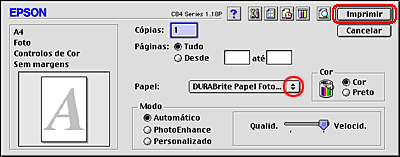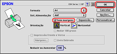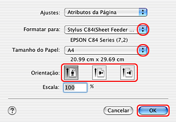 Seleccione Stylus C84 (Sheet Feeder - Borderless) para a definição Impressora .