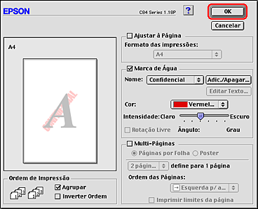 Imprimir a marca de água em Mac OS 8.6 a 9.x