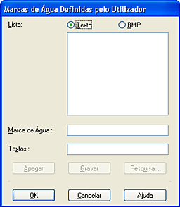 Esta opção permite imprimir no documento uma marca de água de texto ou de imagem.
