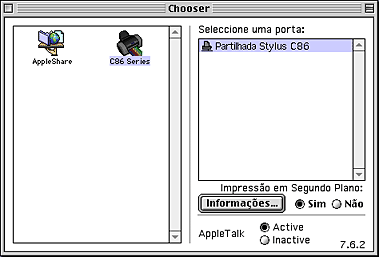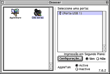 Para partilhar uma impressora com outros computadores numa rede AppleTalk, efectue as operações apresentadas em seguida para configurar o computador que está directamente ligado à impressora.