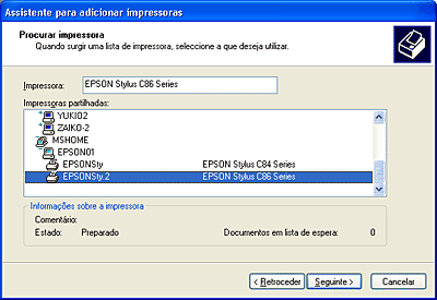 Seleccione Impressora de rede e, em seguida, faça clique em Seguinte.