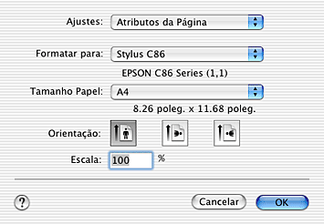 Permite efectuar as definições Impressora, Tamanho, Orientação e Escala que pretende utilizar para imprimir.