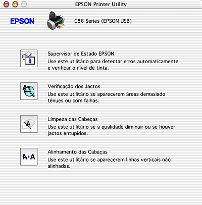 Os utilitários da impressora EPSON permitem verificar o estado actual da impressora e efectuar alguns procedimentos de manutenção a partir do computador.